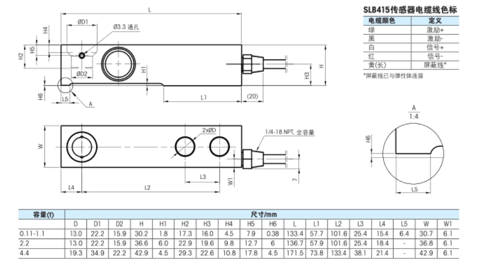 稱(chēng)重傳感器SLB415-4.4t SLB415-2.2t梅特勒托利多