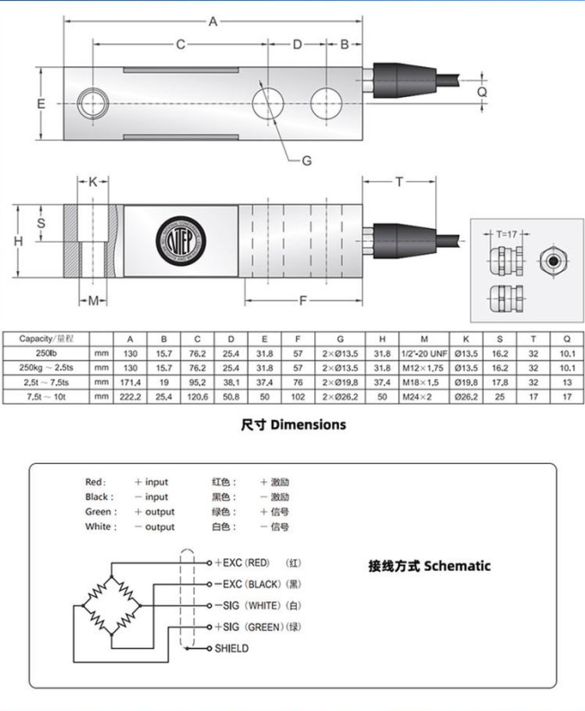 美國TranscellBSH-200kgSS稱重傳感器尺寸圖: