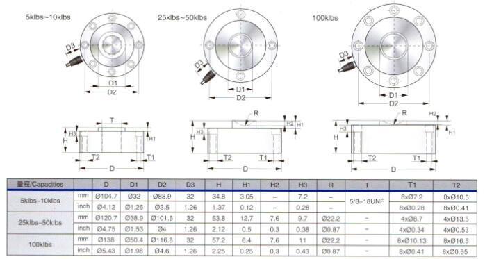 量程范圍:5Klb 10Klb 25Klb50Klb 100Klb