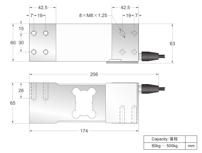 量程范圍:60,100,150,200,250,300,500Kg
